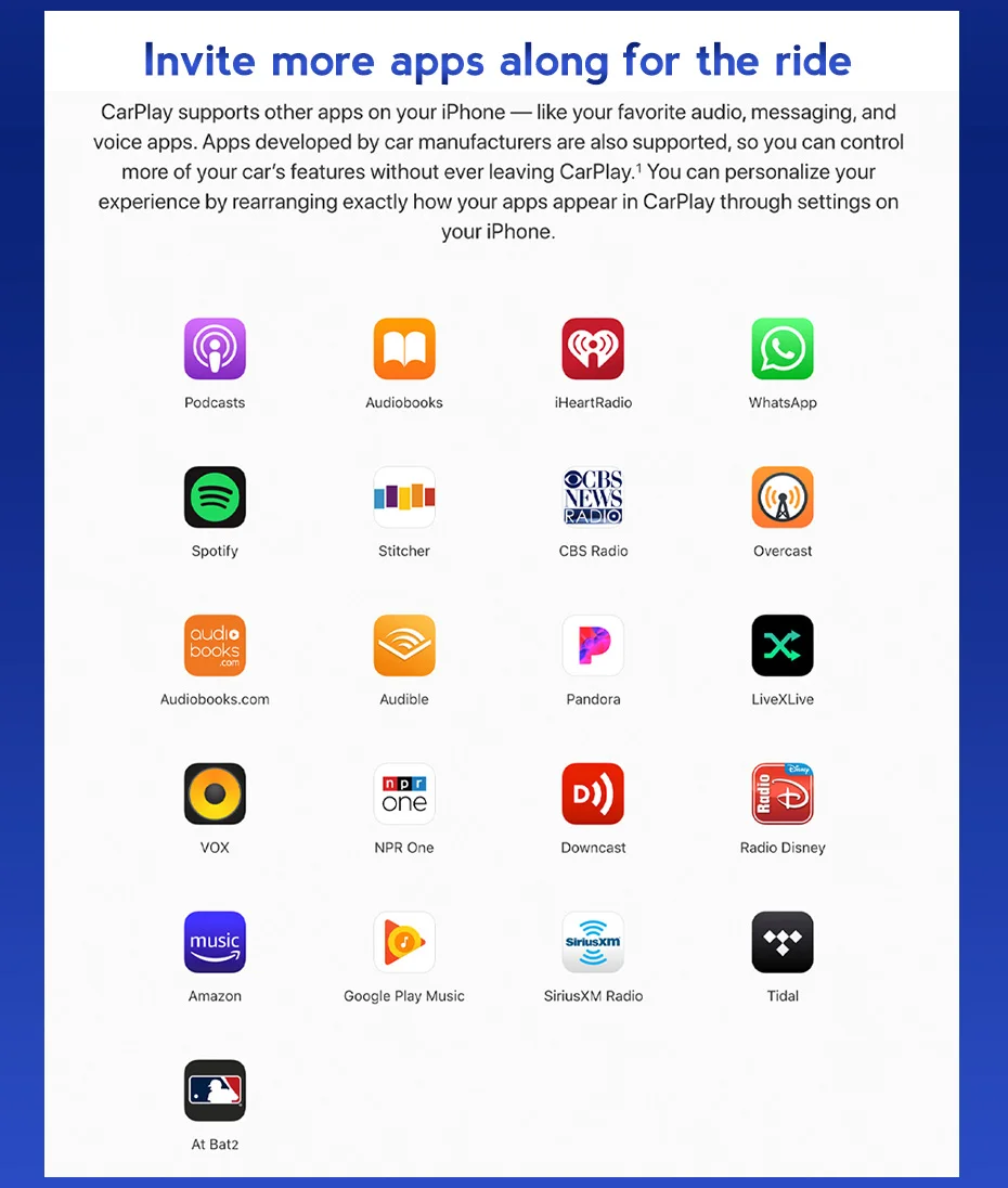 (Note: Android Auto is the equivalent for Android devices.)