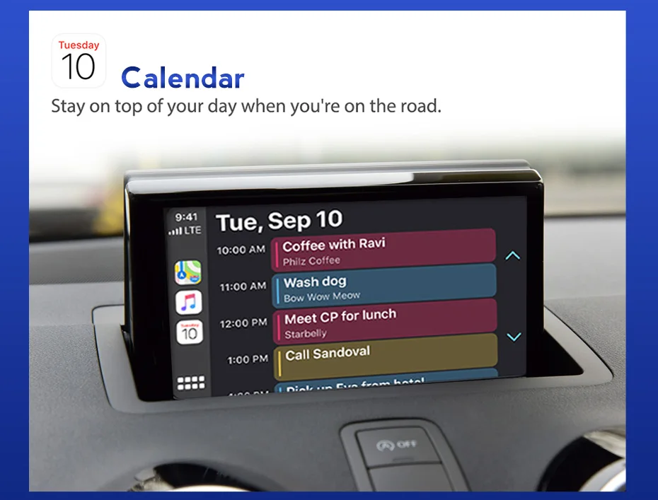 Maps & Navigation: Apple Maps or third-party apps (e.g., Google Maps, Waze) with real-time traffic updates.