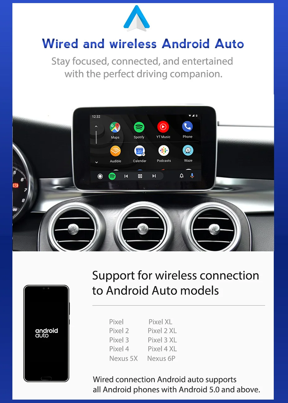 OEM integrated - Full compatibility with your vehicle's original controls (steering wheel, touchscreen, touchpad, backup camera, etc.) for seamless integration.